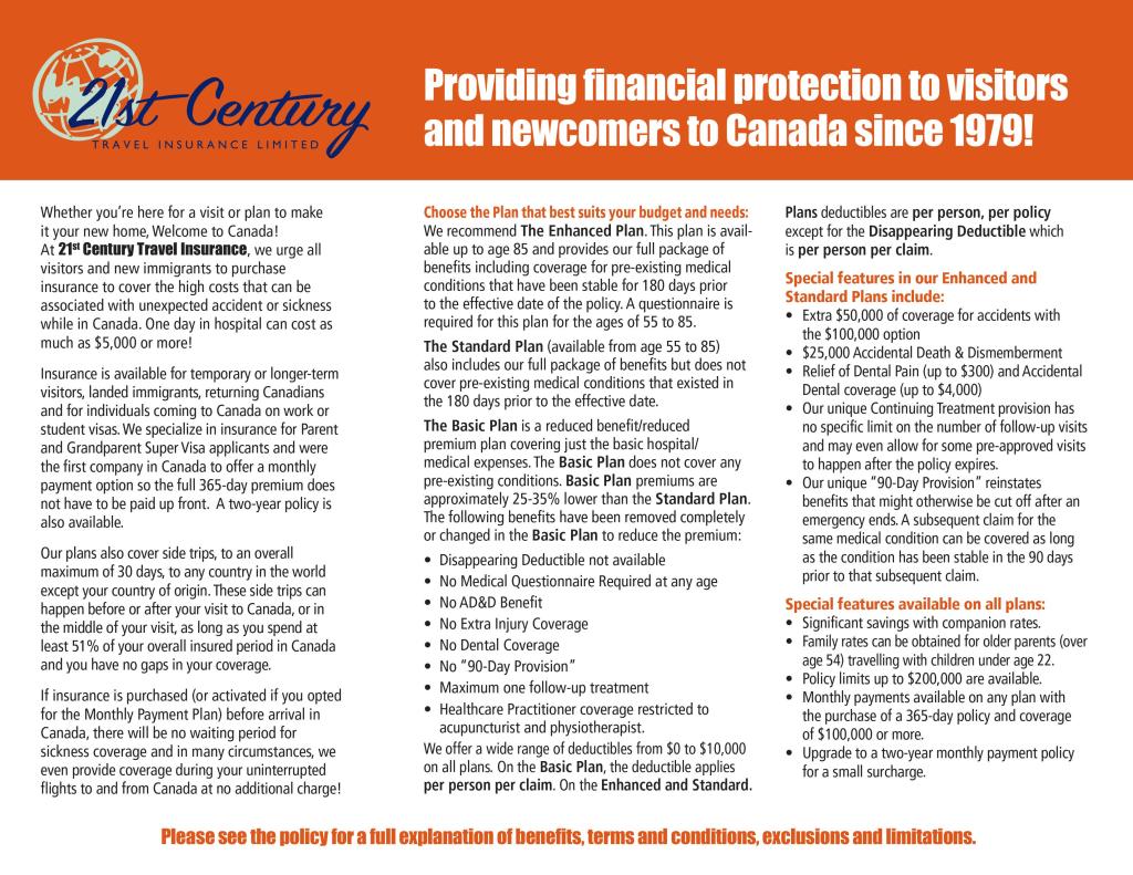 We specialize in parent, grandparent super visa insurance and were the first company in Canada to offer a convenient monthly payment option. A two year policy is also available.